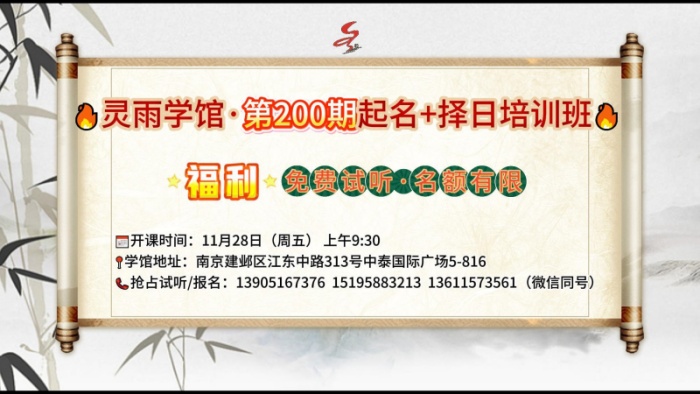 南京灵雨国学培训中心,简称灵雨学馆【第200期专业易经起名择吉培训班】开始报名啦!